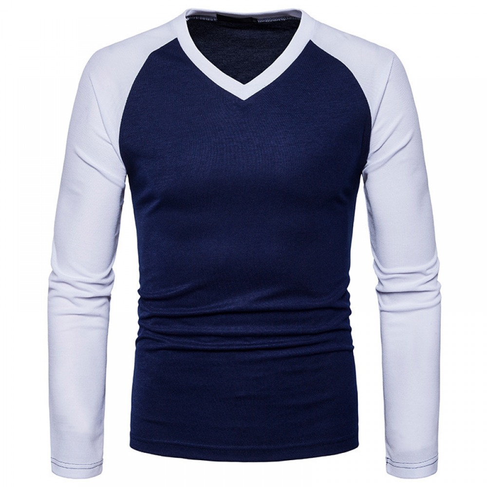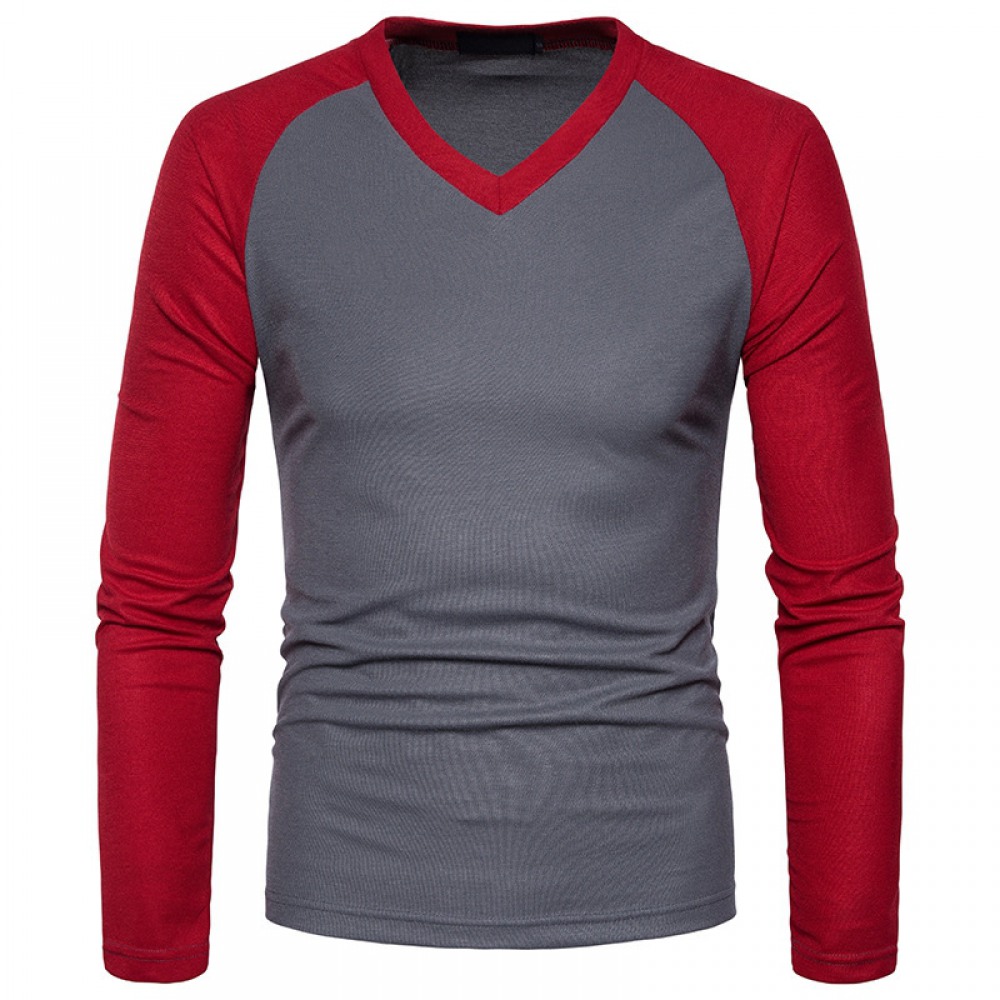 Men's Plus Size V-Neck Long-Sleeved T-Shirt Base Shirt