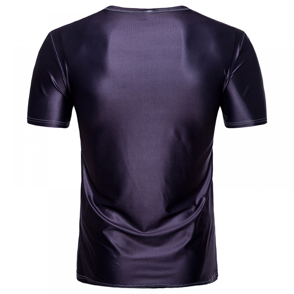 New Men's Personalized Sports T-Shirt Fashion Leather High Pile Collar Short Sleeve T-Shirts