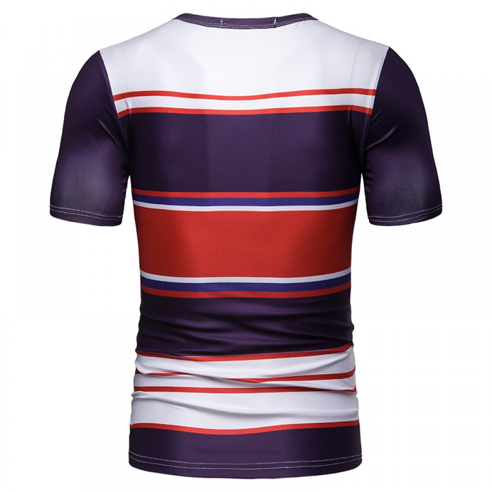 Men's Short-Sleeved T-Shirt Mens Contrast Striped Slim Casual T-Shirt