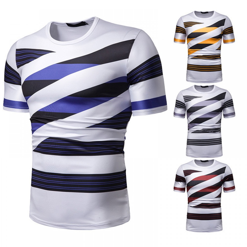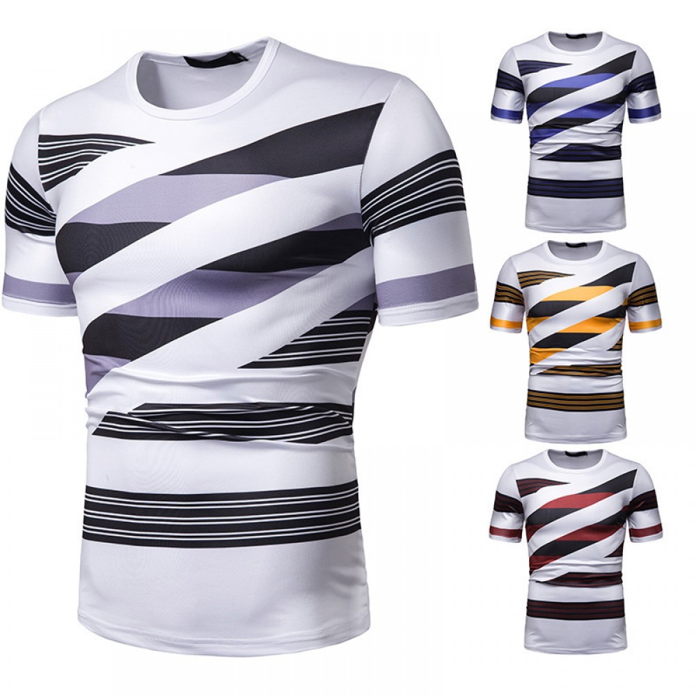 New Summer Men's Short-Sleeved T-Shirt Mens Contrast Striped Slim Casual T-Shirt