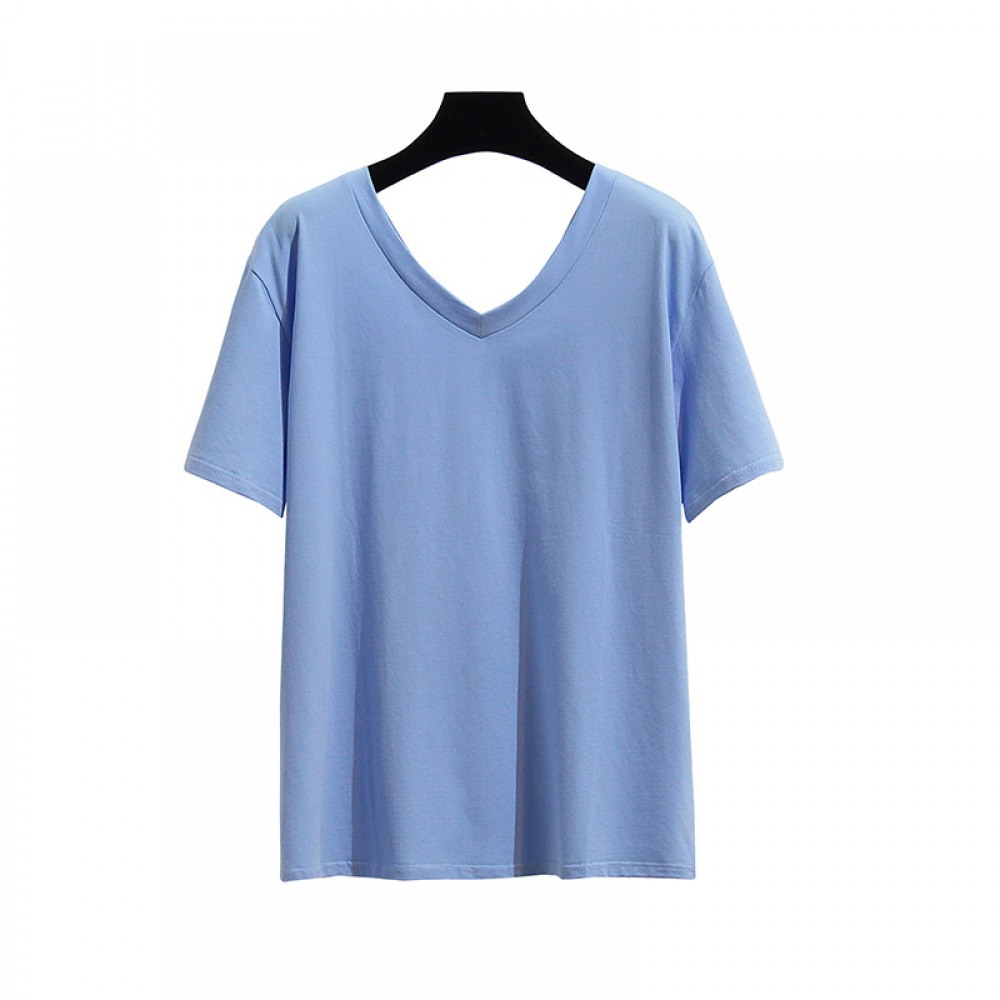 Plus Size Women's Fat Summer New Solid Color Basic V-Neck Short-Sleeved T-Shirt Women