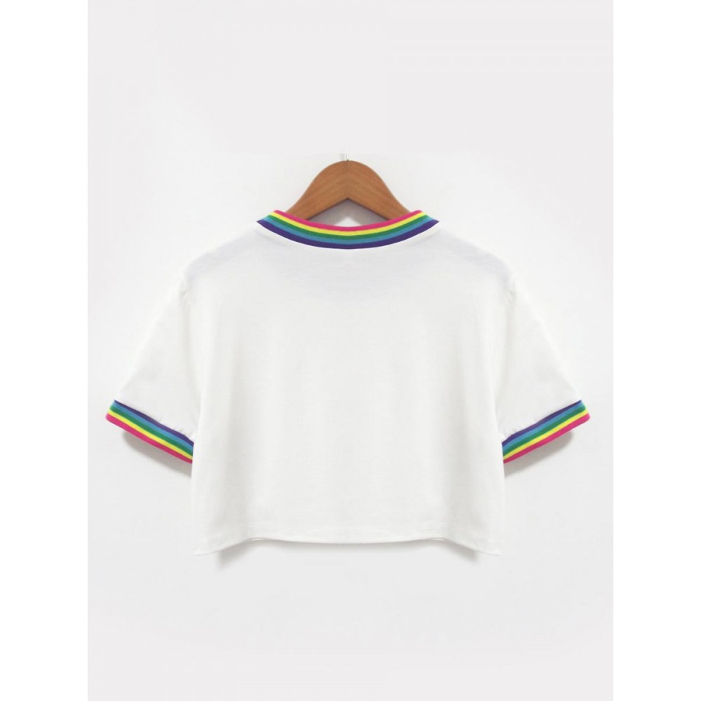 Rainbow Stitching Loose Cropped T-Shirt