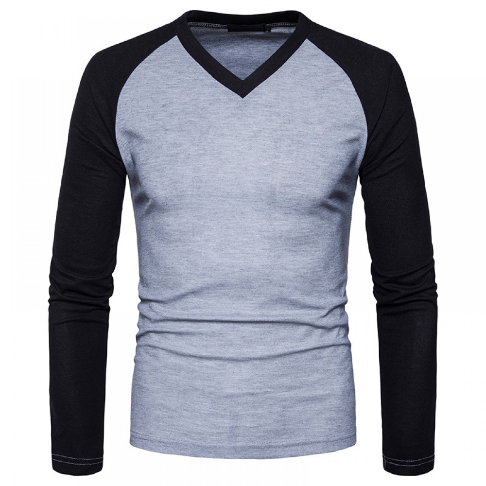 Men's Plus Size V-Neck Long-Sleeved T-Shirt Base Shirt