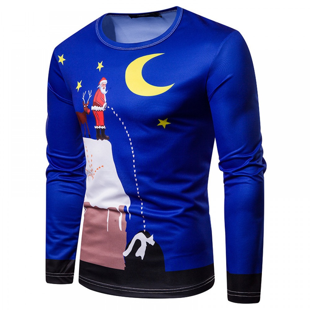 New 3D Personality Printing Fashion Men's Christmas Pattern Long-Sleeved T-Shirt