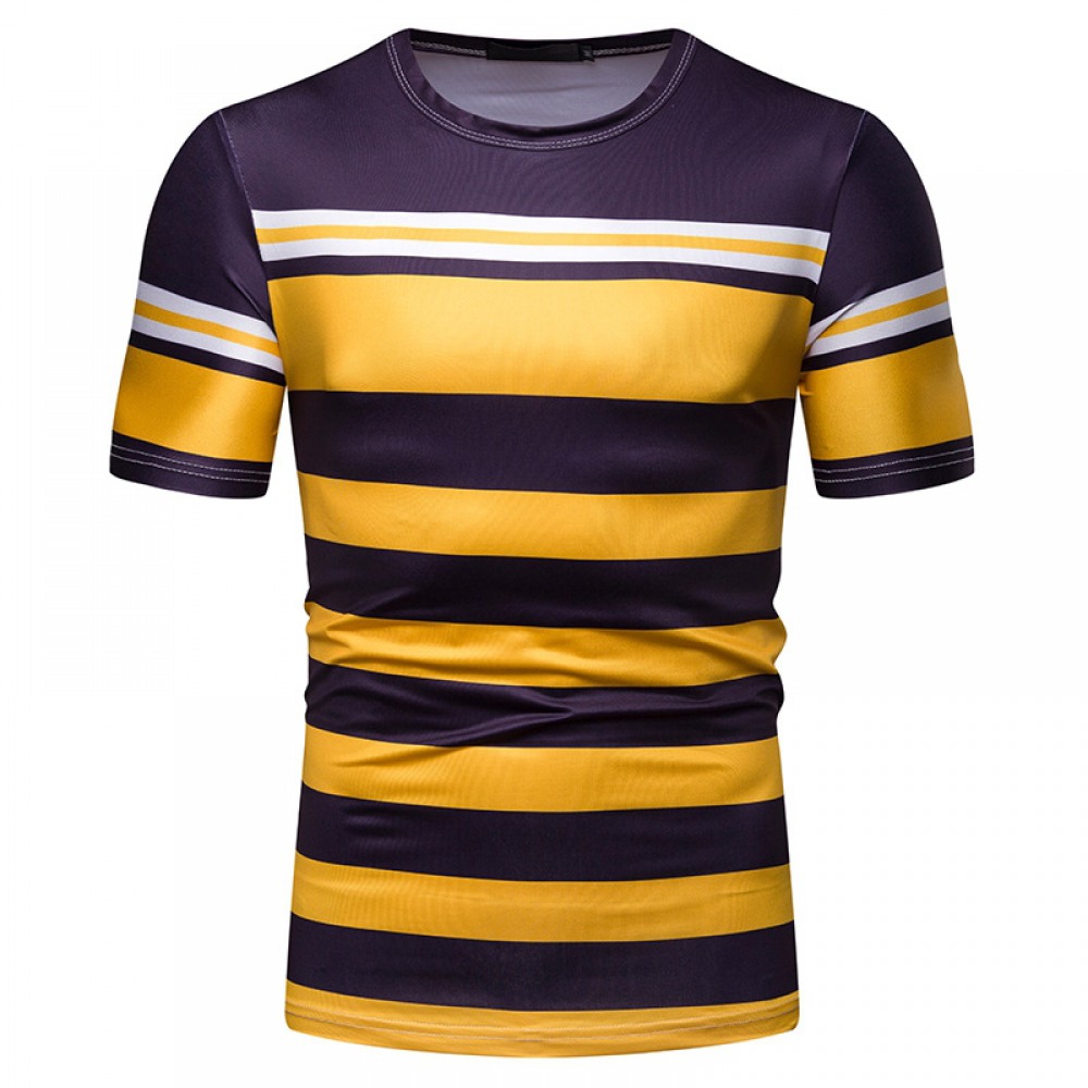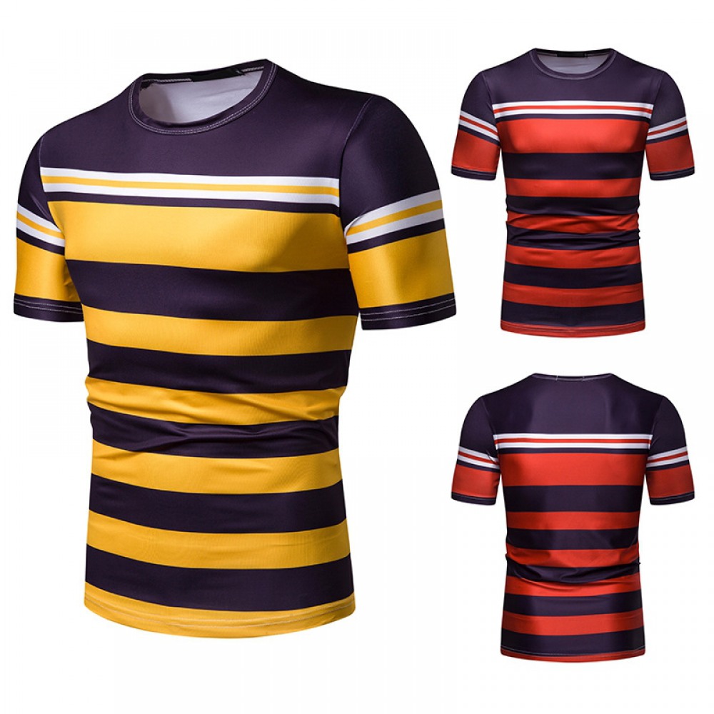 New Summer Men's Short-Sleeved T-Shirt Men's Contrast Striped Slim Casual T-Shirt