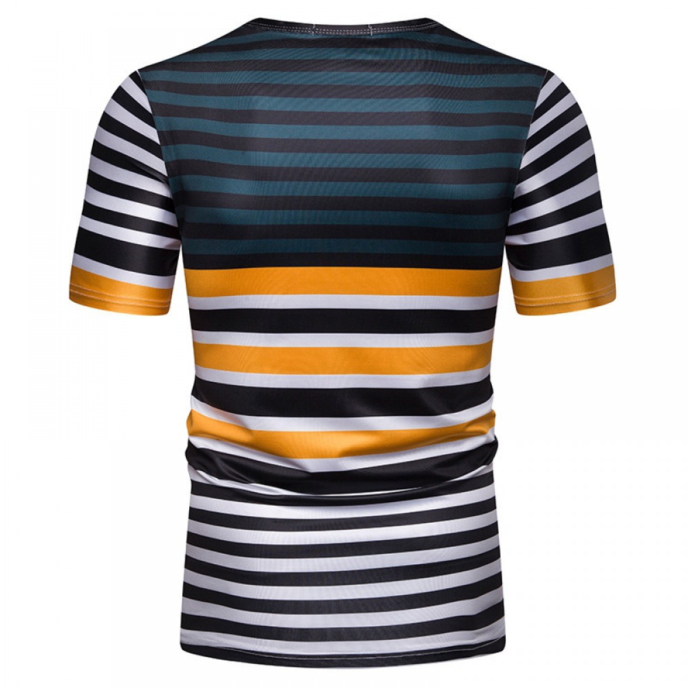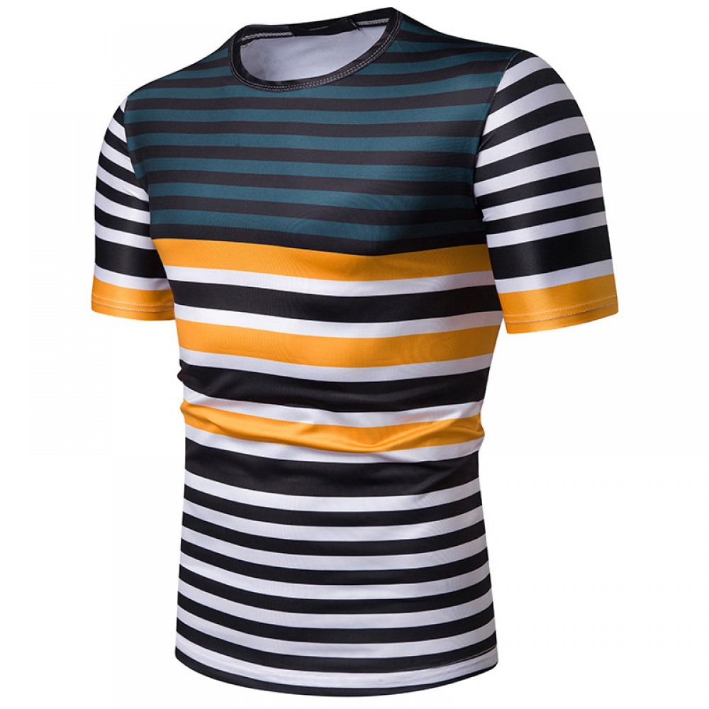 Men's Short-Sleeved T-Shirt Mens Contrast Striped Slim Casual T-Shirt
