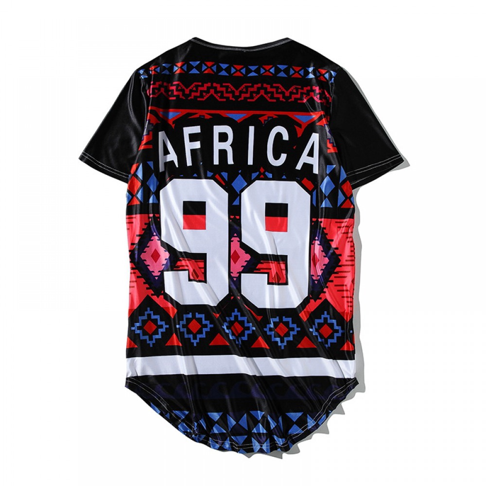 New Tiled African Ethnic Style 99 Letters Printed Short-Sleeved T-Shirt