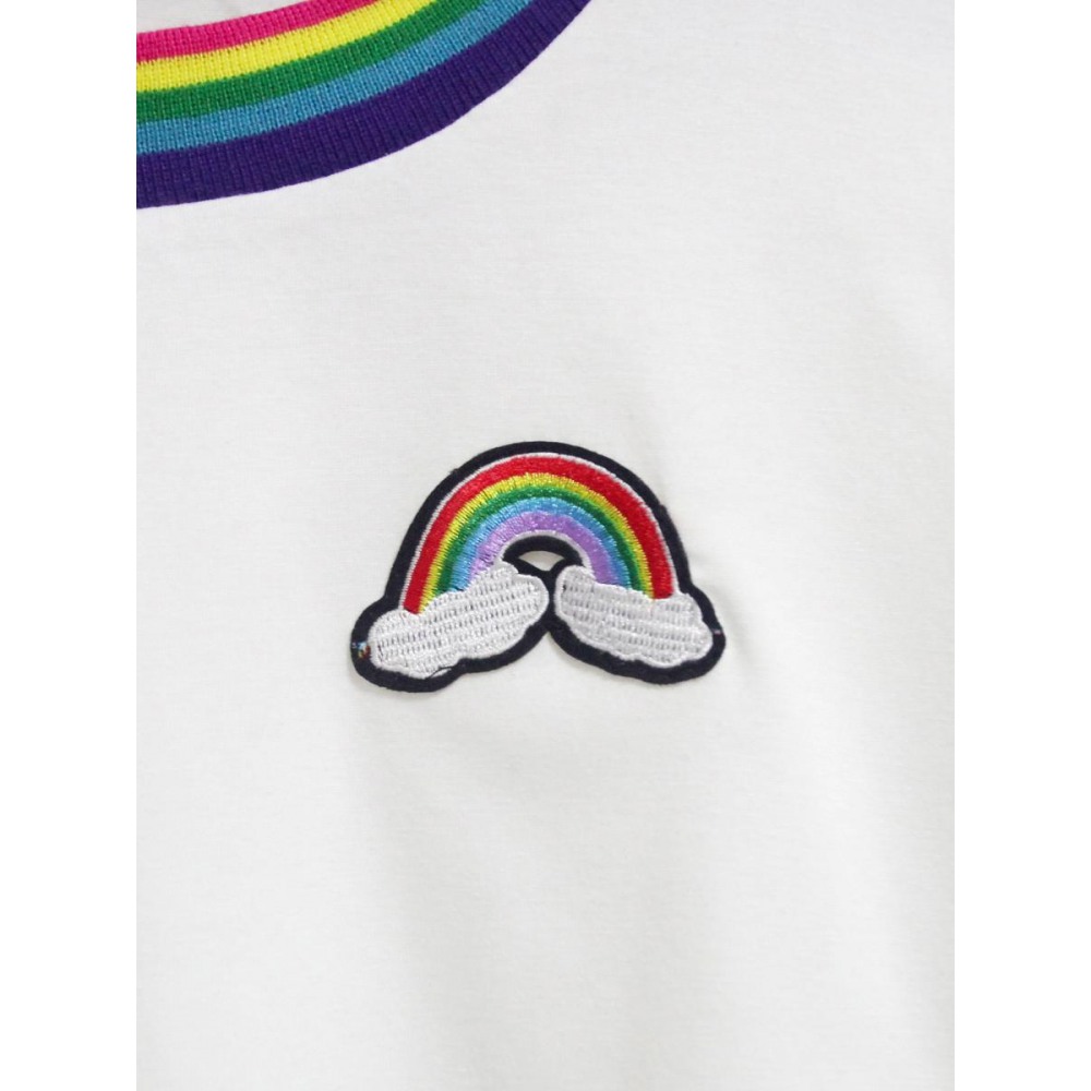 Rainbow Stitching Loose Cropped T-Shirt