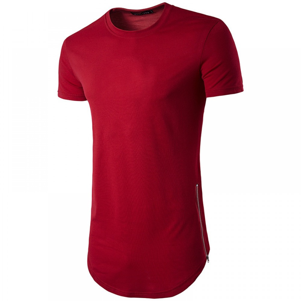 Summer Men's Personality High Street Style Double Zipper Long Round Neck T-Shirt